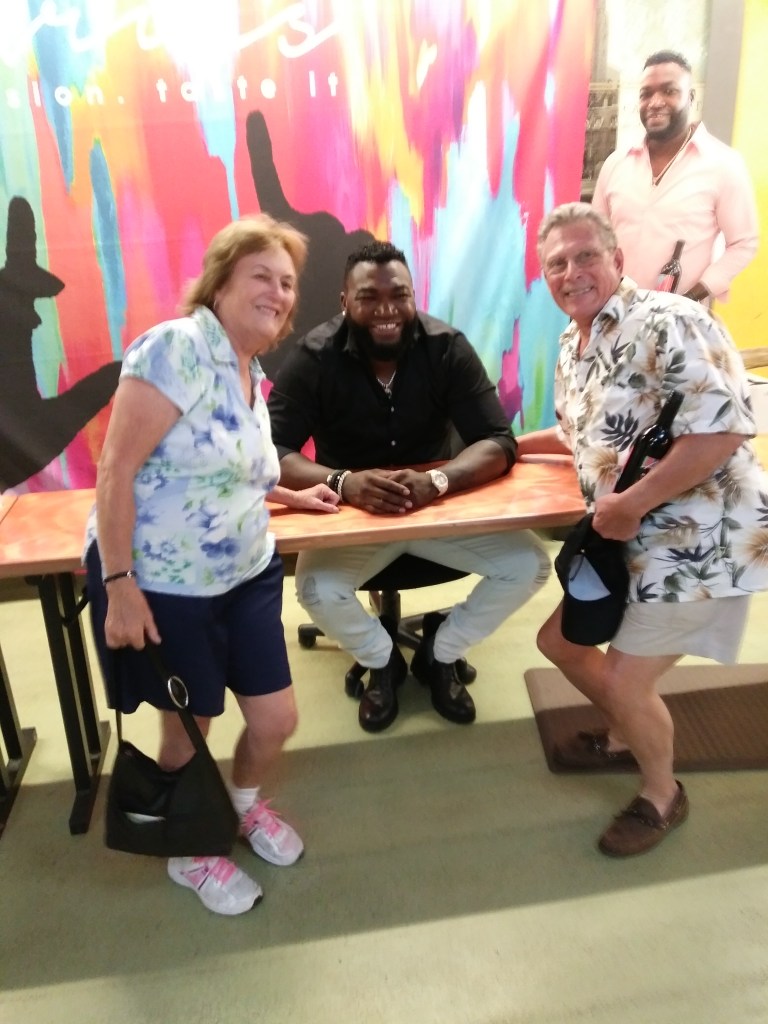 Allen Coburn and his wife Pam meet with David “Big Papi” Ortiz, 2019 at a charity wine event in Westborough, MA.