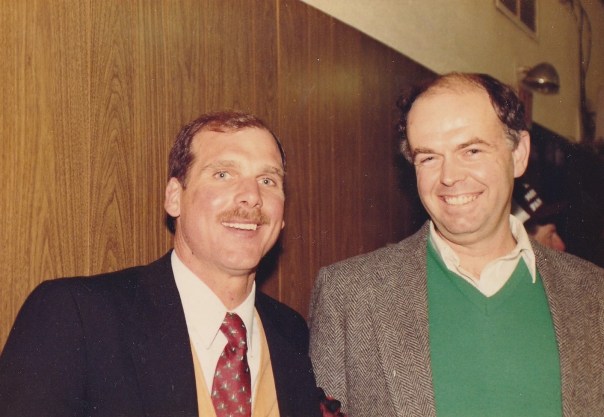 Jim Van Wert (right) is pictured with former MLB star Richie Hebner in December 1985, at the Elks Club on Mill St., Worcester during Charlie Epstein’s holiday party.