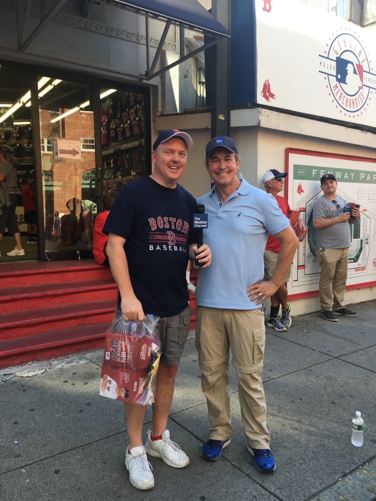 June 12, 2017, Brent Turner met Mike Seidel of The Weather Channel at Fenway. It was Chris Sale bobble head night. The weather at game time was 93 degrees and sunny. The Sox pulled out the victory against the Phillies, 6-5 in 11 innings.