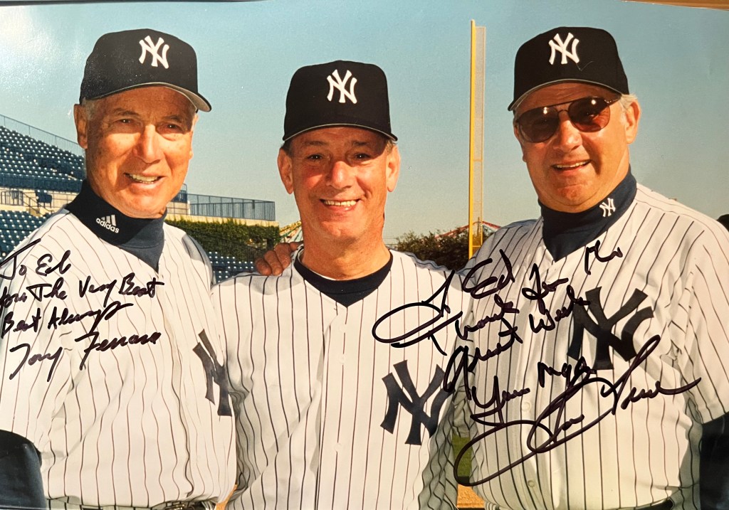 Bottom photo, on the right Tom Tresh, former Rookie of the Year and outfielder with the Yankees and hitting coach Tony Ferrara. Tony has a role in the movie “The Natural” as a coach and was the film’s hitting instructor.